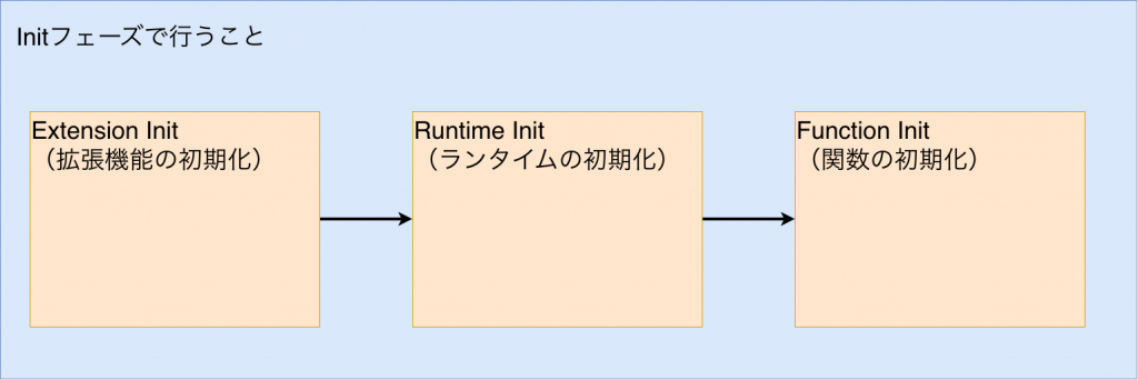 - たどるフェーズ: Initフェーズ(Extension init、Runtime init、Function init)から始まり、