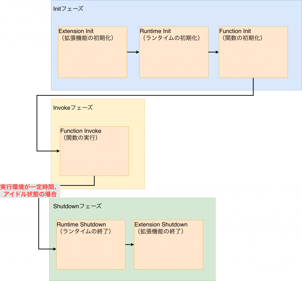 上記で見てきた3つのフェーズは、Lambda関数が呼び出されたときに、